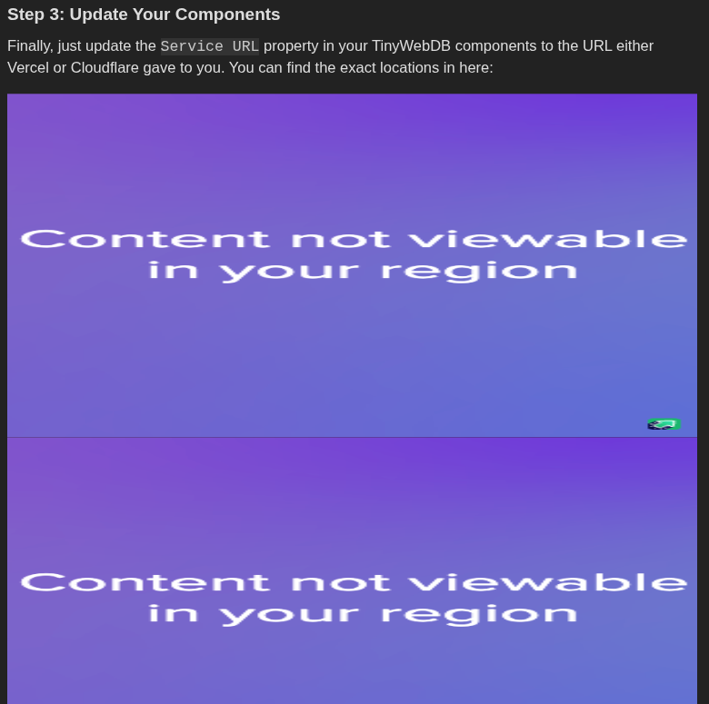 Finally, just update the Service URL property in your TinyWebDB components to the URL either Vercel or Cloudflare gave to you. You can find the exact locations in here: