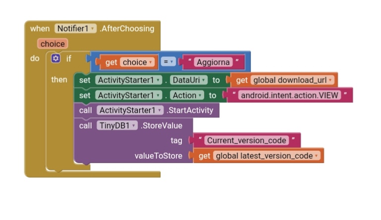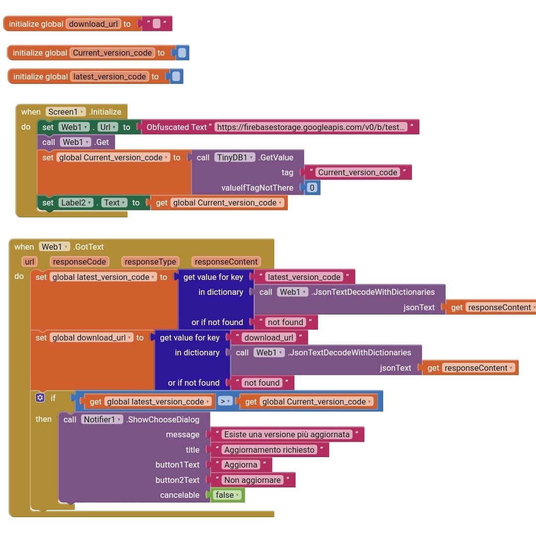 The intention is to check the value of a tag on firebase, which holds the latest version number. The tinydb would hold the value of the installed version number. Compare these two, then act.