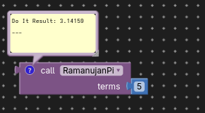 So here is the challenge. Show how you can calculate Pi in the most beautiful, ugliest, smallest, biggest, etc, etc way possible with App Inventor.
