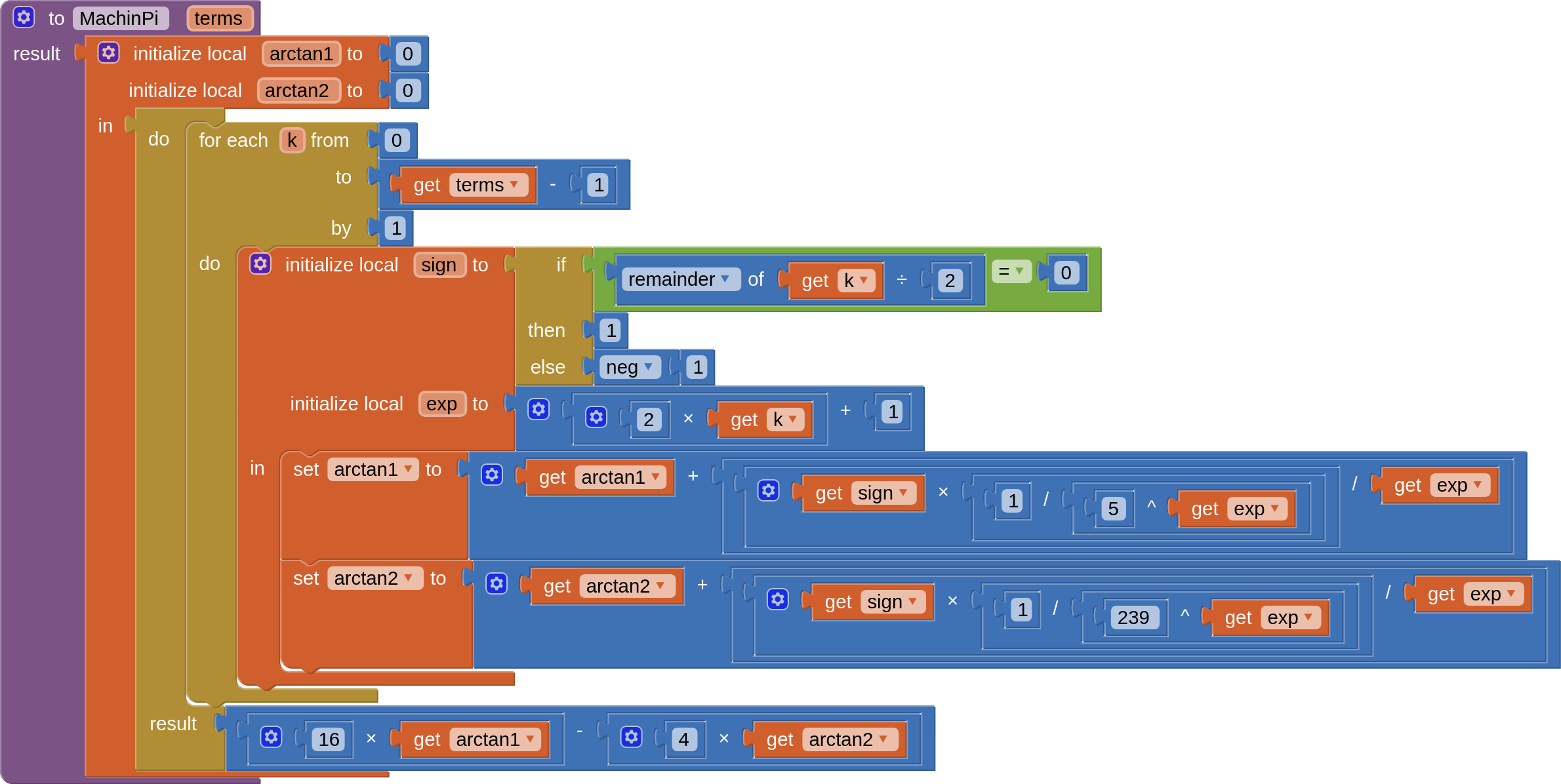 func MachinPi(terms) = {