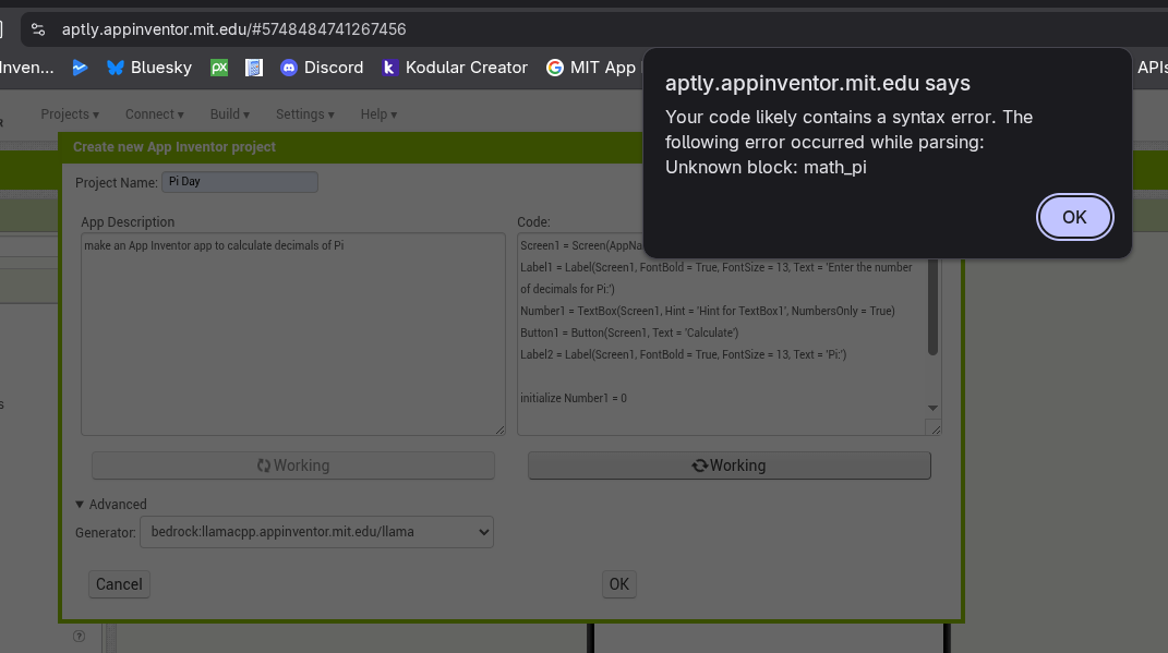Today it is Pi day. So I thought it would be fun to make an AppInventor app to calculate decimals of Pi. I asked ChatGpt to help me out.