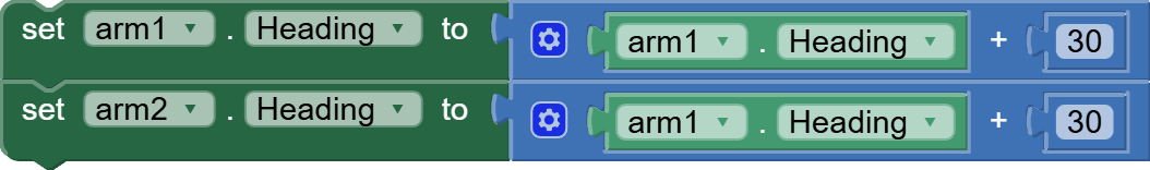 Is arm2 meant to get the arm1 value ? (which would be the original arm1 value +30 +30)