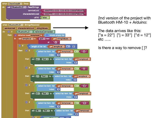 I can see you have really lost your way with the BLE code. Can you upload the BLE project? (.aia file)