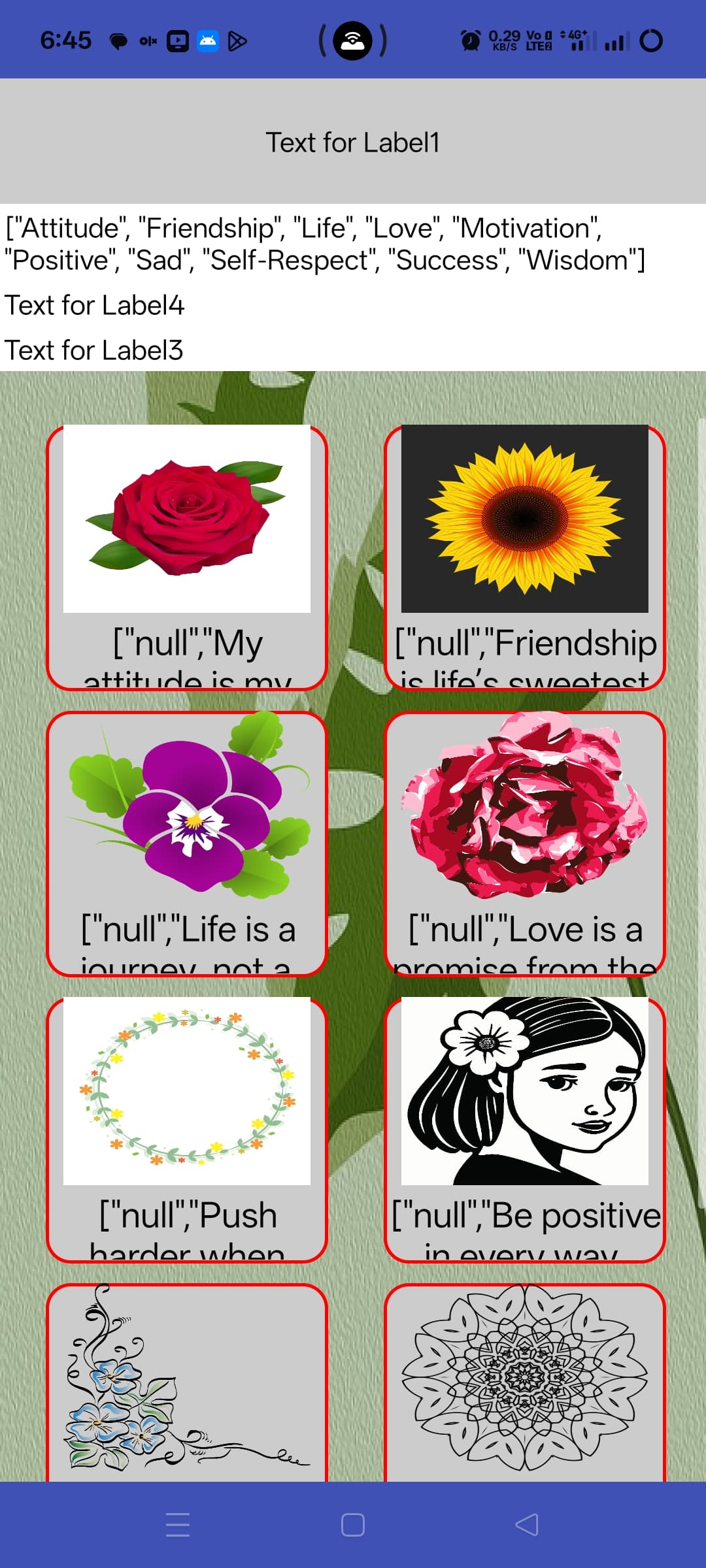 Tried it, error went but, there was a problem, the data loaded in the text, that data should be visible in screen 2, it is visible here, in that place [Attitude", "Friendship", "Life", "Love", "Motivation", "Positive", "Sad", "Self-Respect", "Success", "Wisdom"] this text should be shown, I think the recycle list data is going to the wrong path