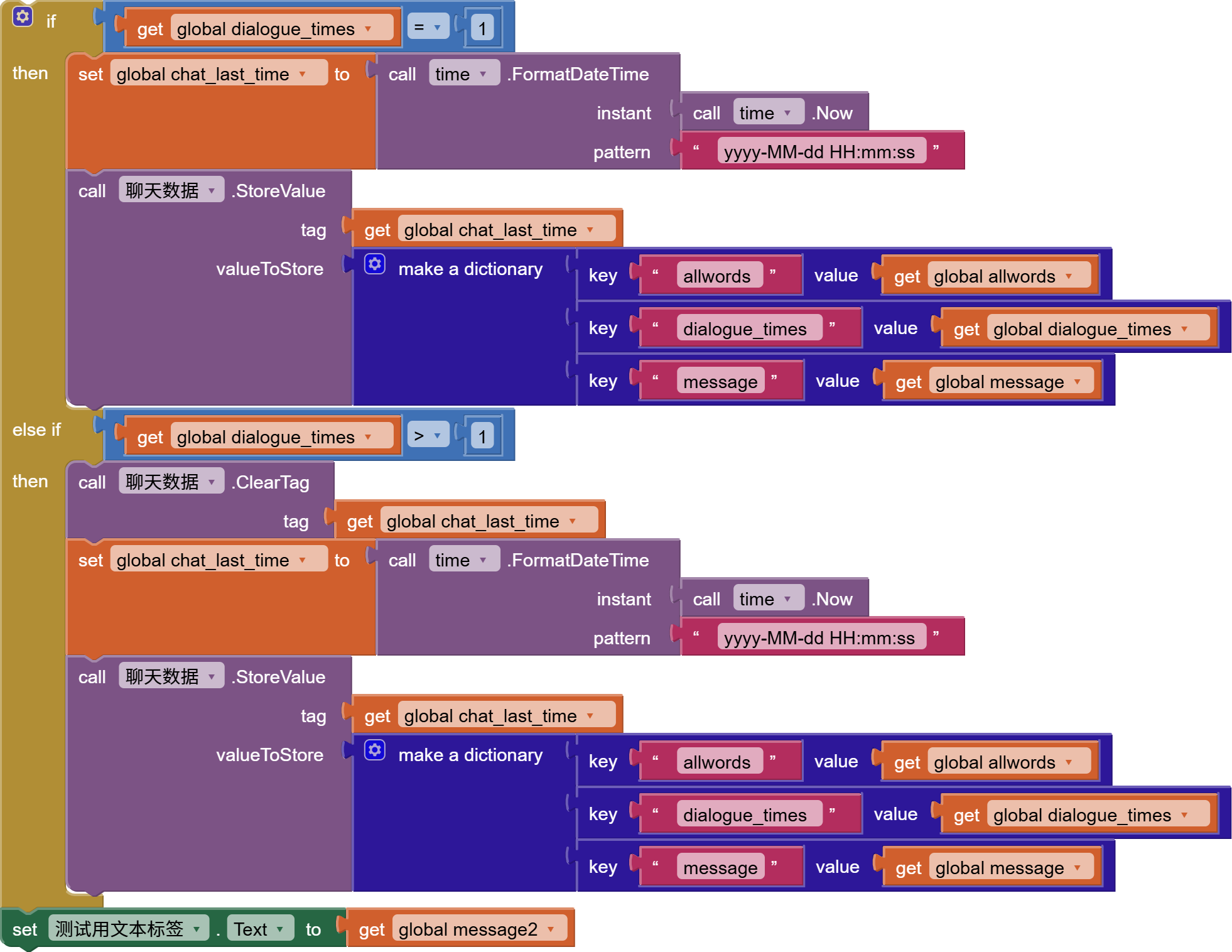 save the updated chat history list back into its TinyDB tag.