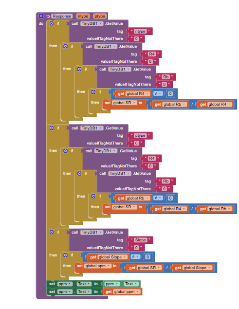 These blocks will be for the gauge, which will be connected to response and recovery times, and I converted ppm to degrees as you said earlier. At recovery time I need to get R baseline, while at response time I need to get R gas, which is R4.