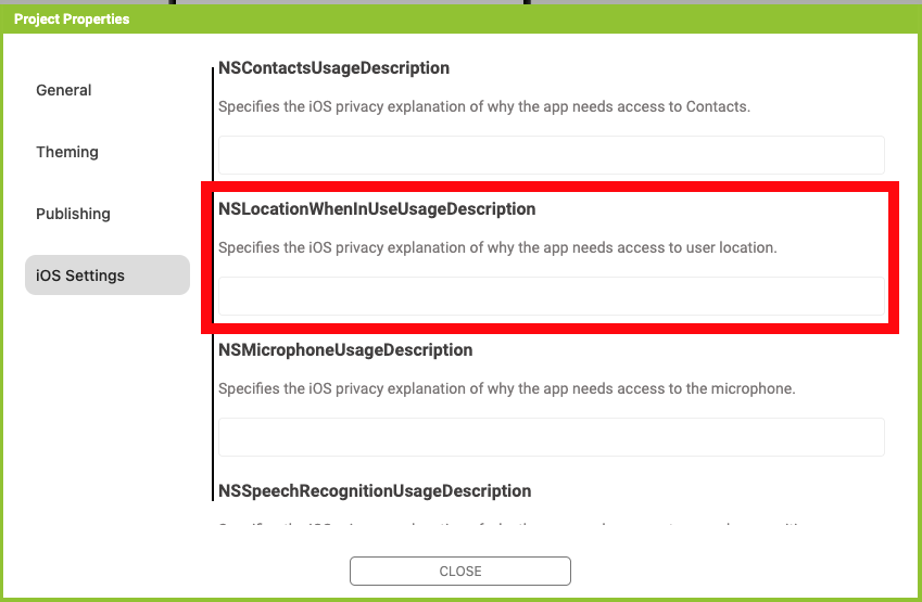 So, I need to change the text in the pop up to indicate why the location information is necessary, but I don't know how to change the text (again) since it is not generated within the blocks. Thanks!