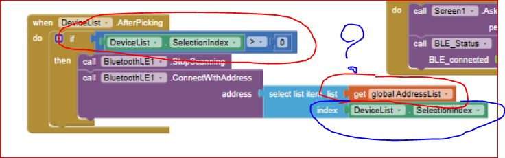 In addition to what @ABG has already said (collapsed blocks are unreadable), what I can see from your blocks is that you load a list from a kind of elements, but you select (pick) from another one: