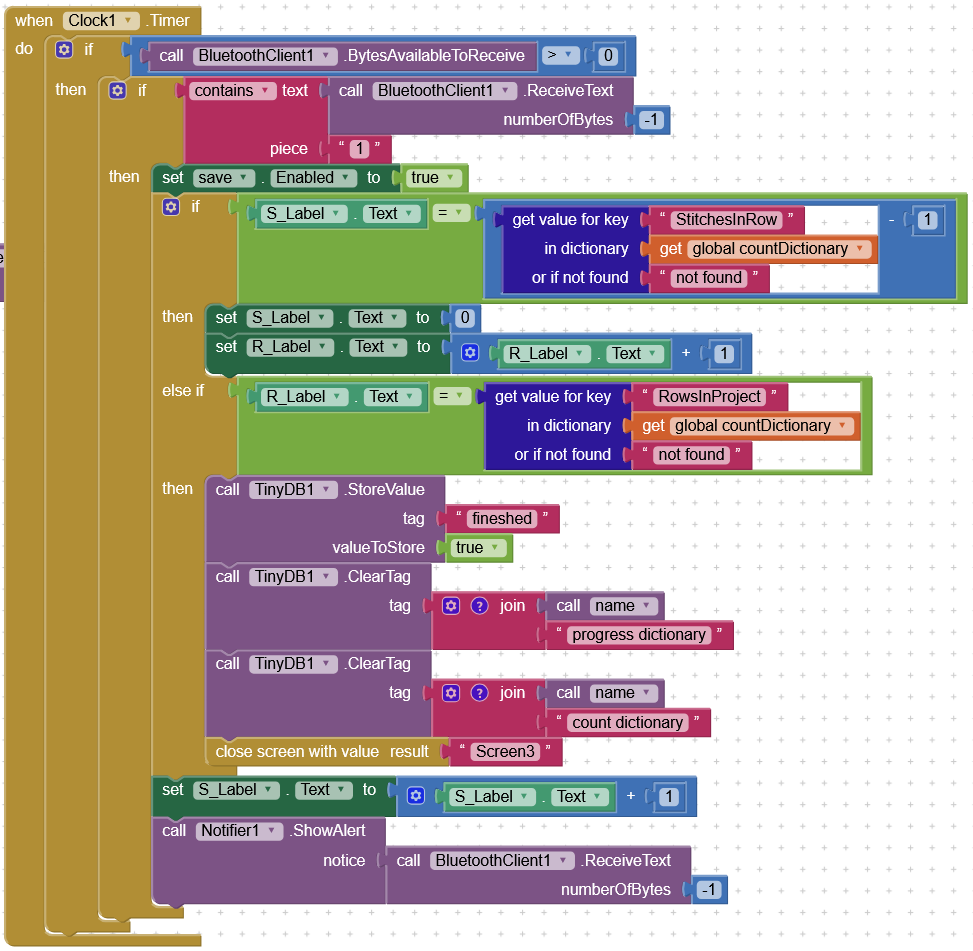 Second: don't enable the clock to run in background, because it will run also when you've changed the screen, and this still will cause problems, because it operates on the bT, but the BT is ceased when the screens are switched. To avoid this, you shall stop the clock before leaving the Screen1, and reactivate it only when the BT comm's are restored. (Typically when the BT is needed it is better to use "virtual screens" instead. You can find how doing it, by searching the forum with the tag "virtual screens").