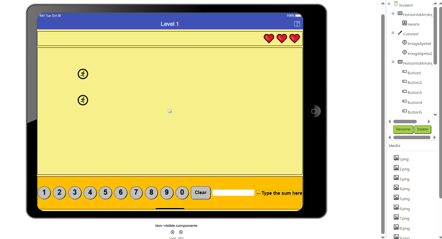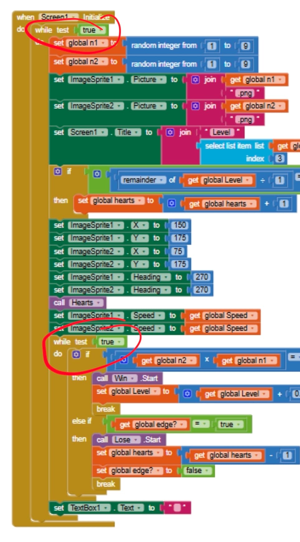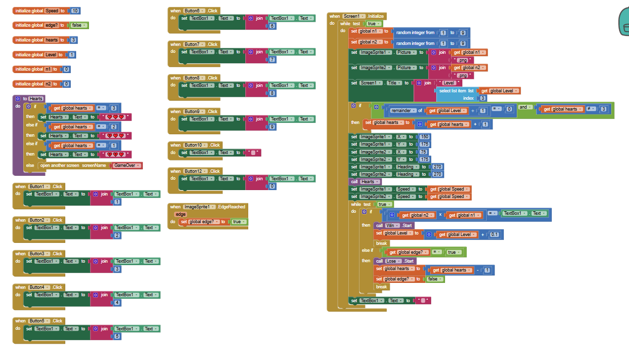 We need to type or press the buttons on the screen to enter the product of the numbers on the two image sprites. It is supposed to be simple, but the runtime error.irritant(The operation select list item cannot accept the arguments...) error keeps popping up.