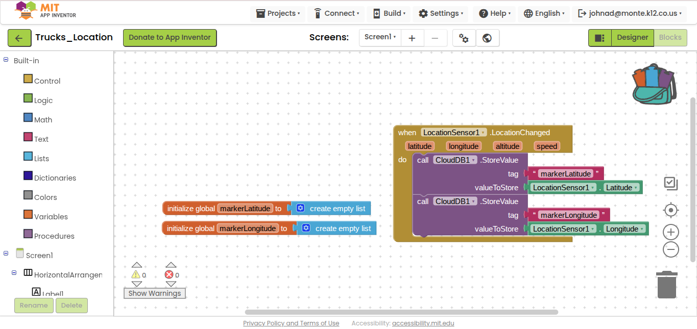 You need a Button or a Clock Timer to ask CloudDB for its truck location info.