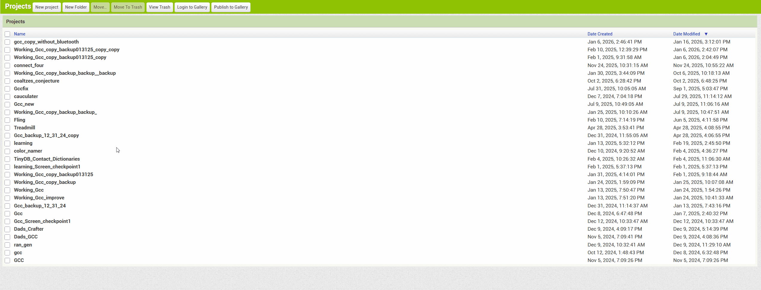 The trash options are not available. How do I delete a project as I would like to rename a later version to the version I'm trying to delete so I can upload the new version to the play store. I've tried opening the project and selecting delete project from the menu but its refusing to go. I've also tried logging out and back in again. Any help would be greatly appreciated.