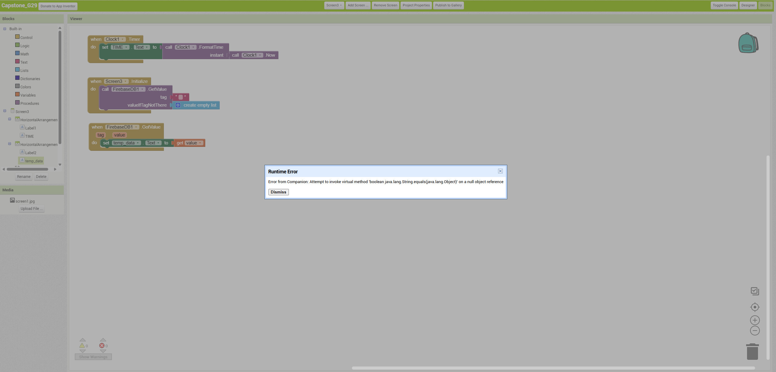 Error from Companion: Attempt to invoke virtual method boolean java.lang.String.equals(java.lang.Object)' on a null object reference