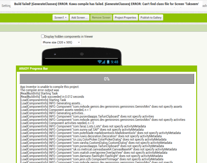 Now, these errors appear when attempting to rebuild the project, and it often requires many repeated build attempts before an APK is finally generated.