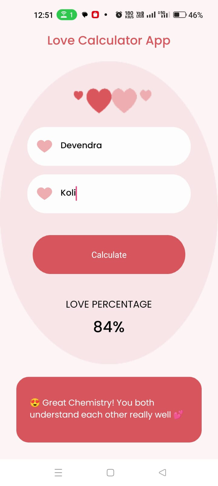 I’ve created a Love Calculator App with a beautiful, clean, and minimal design using MIT App Inventor. In this app, you simply enter your name and your partner’s name, and it instantly calculates your love percentage. Along with the result, the app also displays a fun and meaningful message based on the calculated percentage, making the experience more engaging and enjoyable.