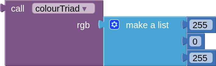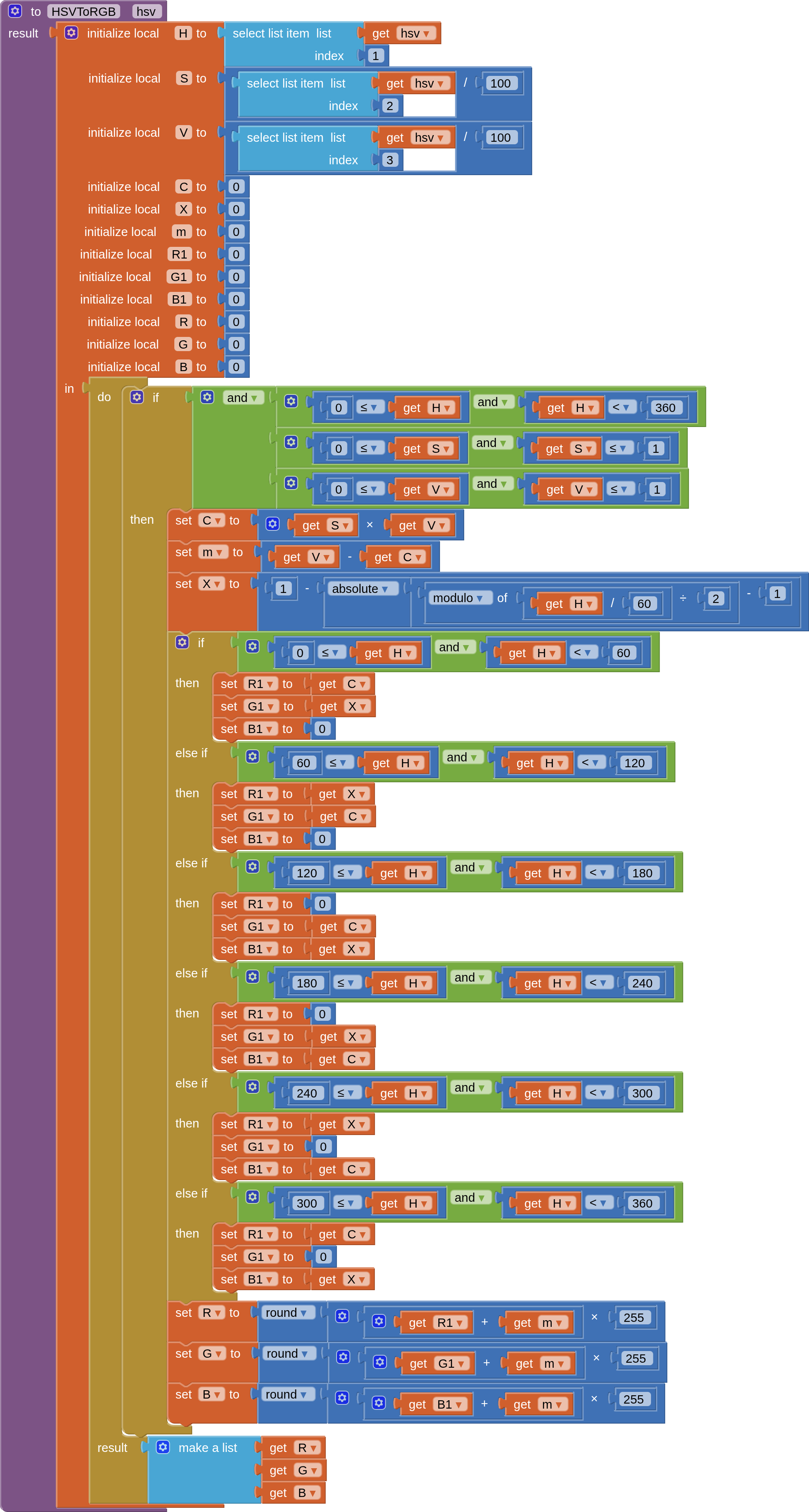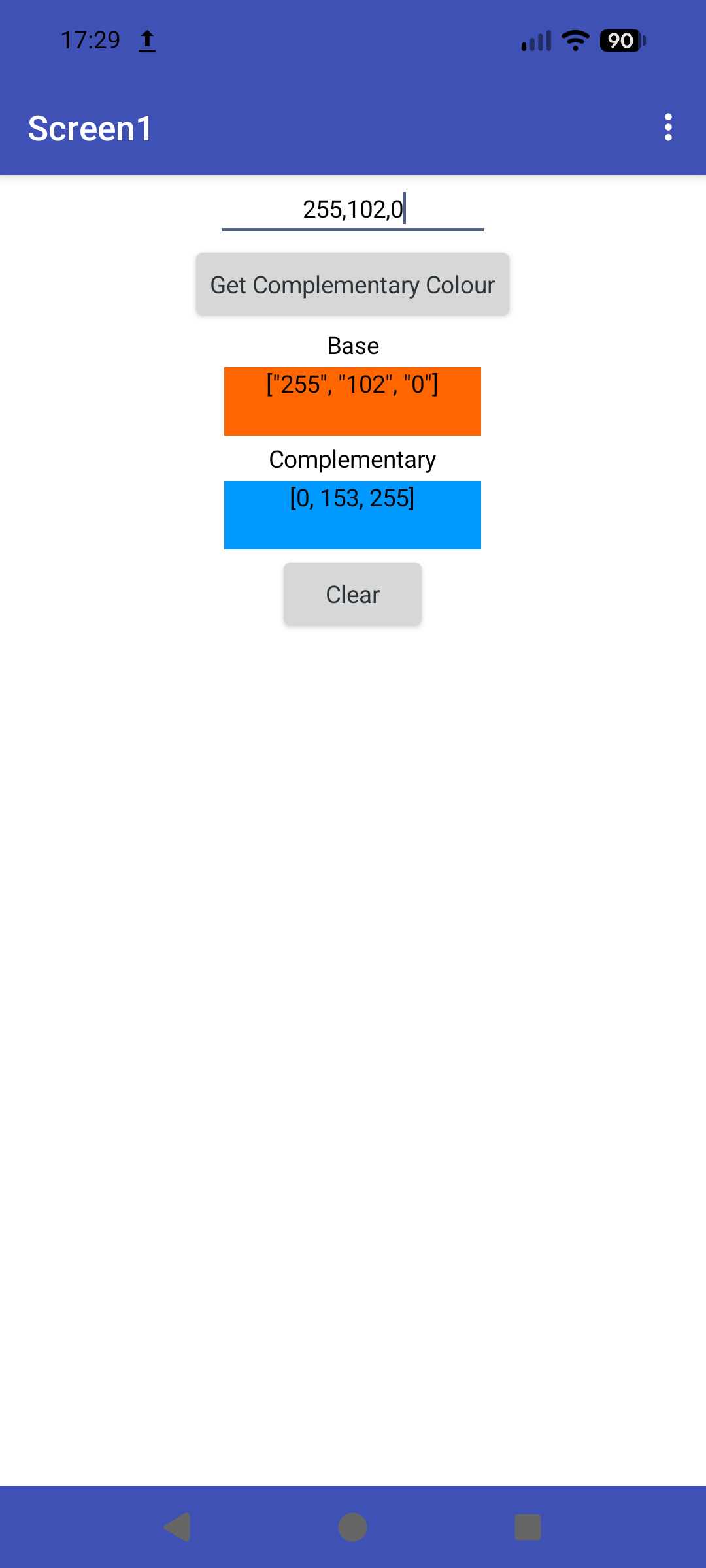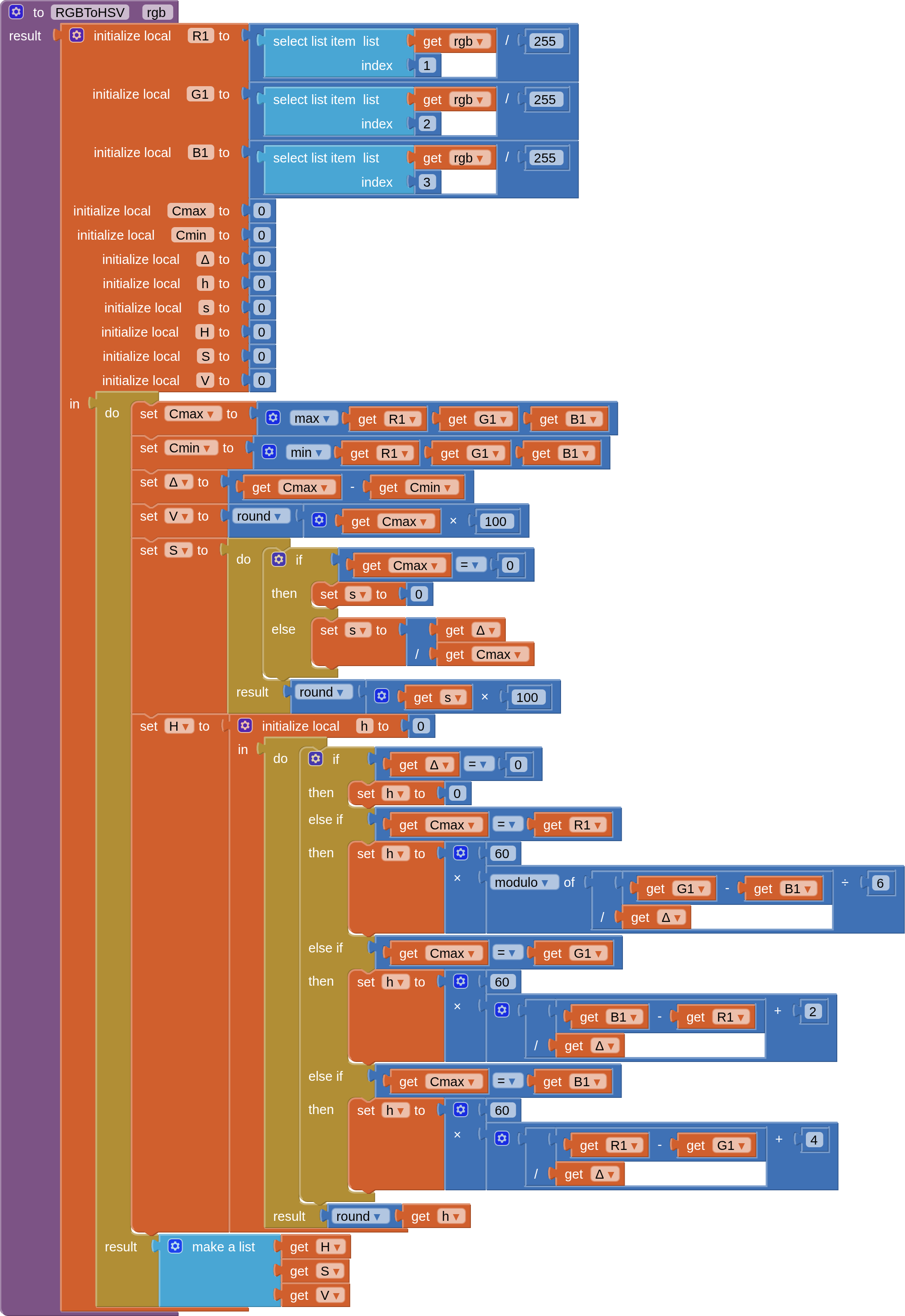 this is an example of the app. When i input an RGB, the colors that output is clearly not a complementary colour of the original RGB. Blocks included above
