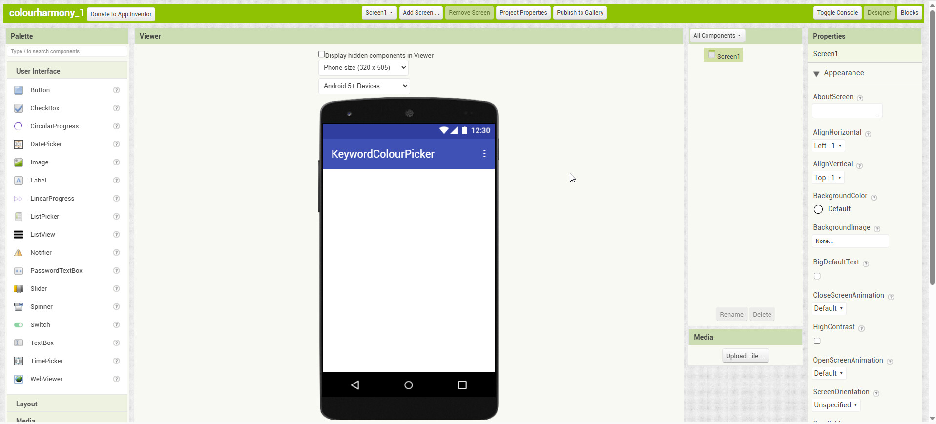 functions convert the rgb input into hsv, complementary and triad function then converts the hsv into the respective complementary(1) and triadic colors (2) –> converts it back to rgb for the make a color block for the bg colour of the button