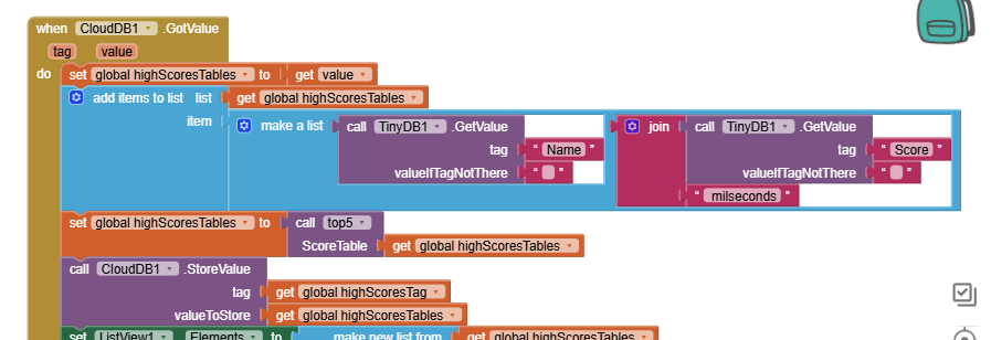 You used the wrong tag when you asked clouddb for the top 5 score list.