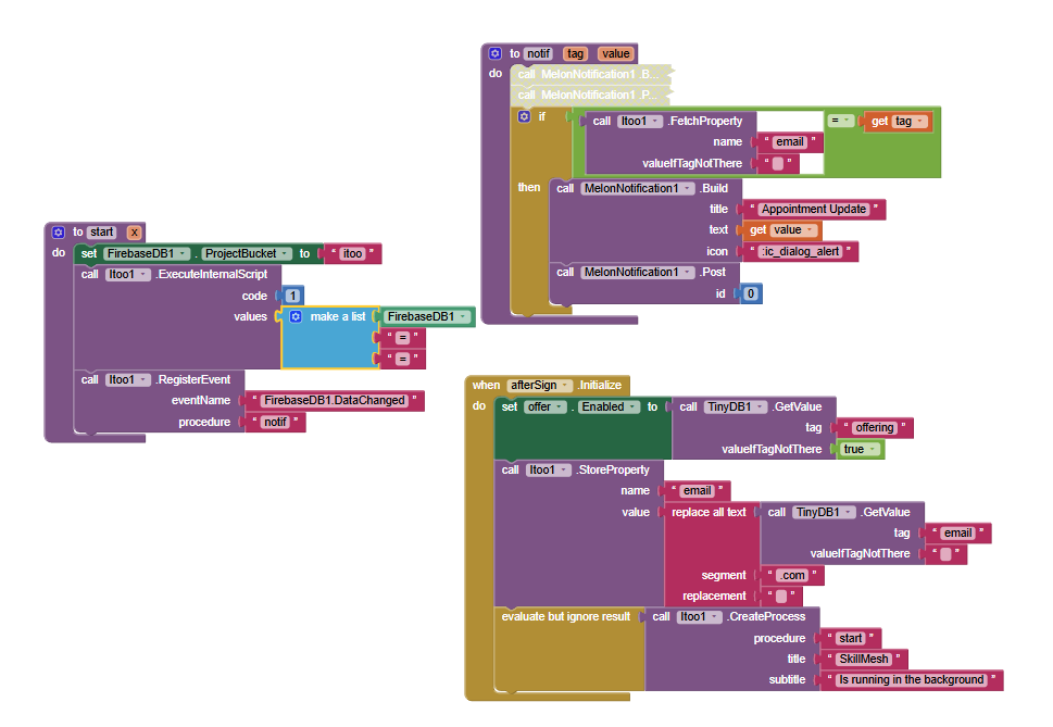 i have this code setup, why doesnt the notif work after closing my app? i turned off battery optimization already(and the itoo notification does show up but the firebaseDB datachanged doesnt work i think). When i reopen my app the notification shows again