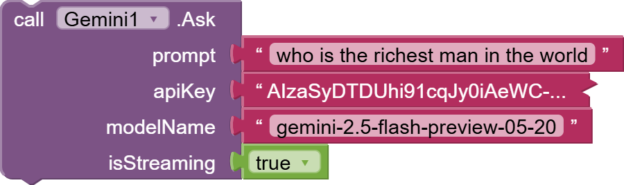 Two blocks were added to make it easy and fast to ask the model one single question without continuous chat, unlike the previous function GenerateGeminiContent block that enables you to create continuous chat :