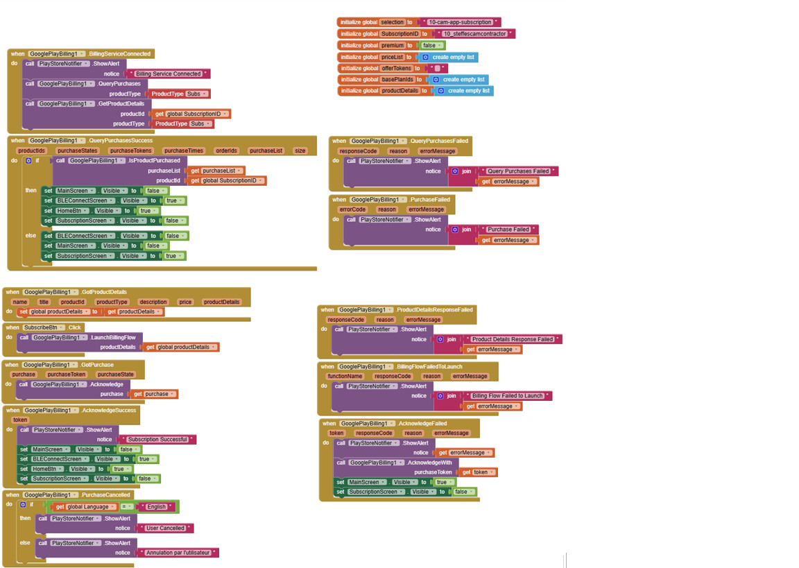 Hi @JEWEL , I purchased your extension last week. When I try to purchase, it says it successfully connected to the billing service, but it fails on Query Purchases with an unknown error. My app has only one yearly subscription available. Is there any way to get more detail on what the unknown error may be? I'm using MIT App Inventor, and the app compiles and I'm able to upload it for internal testing. Thanks.
