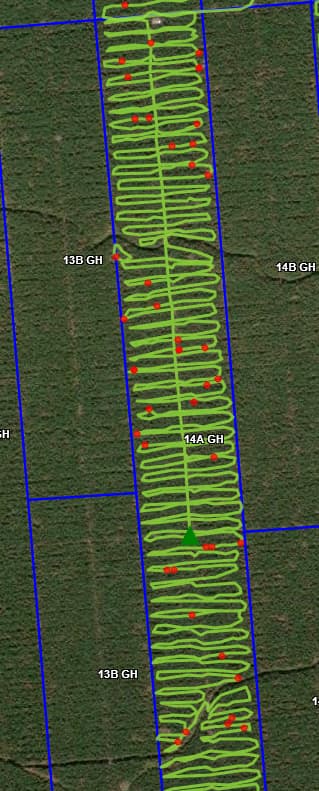 I set the GPS logging interval to 10 seconds to help verify whether a surveyor thoroughly covered their assigned areaโsimilar to whatโs shown in the attached image below. The green lines represent the tracking path, while the red dots indicate the locations of surveyed diseases.