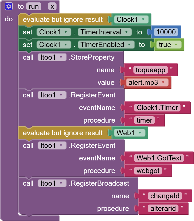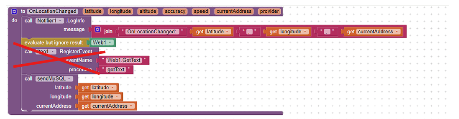 There's even a better way, that is to not use the Register Event block at all! You need to just create a procedure with the following convention: ComponentName_ComponentEvent e.g. Web1_GotText with correct number of arguments, and it'd be automatically registered.