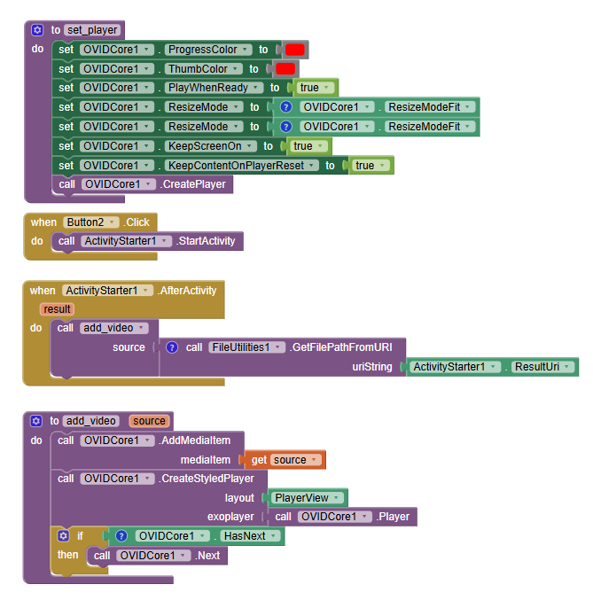 Now I am trying the first of your examples in the documentation, but I am stuck. The example .aia has a few extra extensions except OVIDCore, and I think I need some of this, like FileUtilities and a thing called PlayerView. Where can I find these?