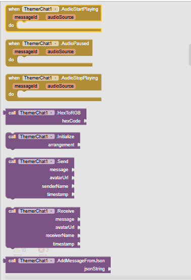 ThemerChat is an advanced MIT App Inventor extension designed to customize chat UIs with just a few clicks! Whether you want a WhatsApp-inspired theme, a sleek Telegram interface, or the vibrant Messenger look, ThemerChat makes it easy. Developers can fine-tune chat elements like bubble colors, text styles, timestamps, seen marks, backgrounds, and more....