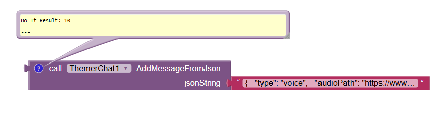 - Appends a single message to the chat from a JSON object string without reloading the entire view. This is the most efficient method for adding messages in real-time. Returns the newly created message's ID, or -1 if the JSON is invalid.