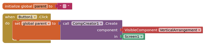 Szeretnék csinálni egy appot és benne compcreatorral hozok létre gombokat...... Szeretnék valaminek beállítani a szülő komponens kitöltését de nem tudom mert nincs ilyen blokk. Hogy csináljam?