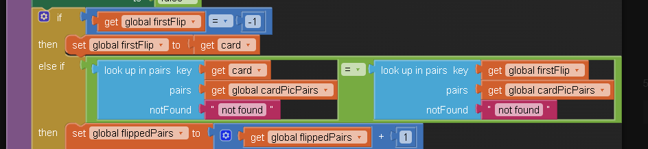 Dear ABG, Thank you. I put now the initialise cards block with the buttons in a procedure with the name "createList". But the issue with the pairs I do not understand. Every card has to be online twice for a pair, but if they have the same names, then the system will overwrite the first image with the same image name. Could you please tell me, how I should name the images? This was not shown in the video tutorial. Thank you very much!