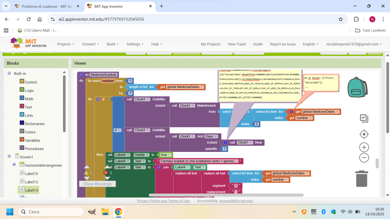 Ciao Nicola, molto probabilmente c'è un problema di tipi di dati che entrano nel confronto (il confronto che fai è di tipo matematico, ma magari uno dei due termini è una stringa, oppure uno è una data e l'altro è un numero di millisecondi), Ti suggerisco quindi di visualizzare in due label separate le due grandezze che ottieni con le operazioni di conversione (qui con penna rossa e penna blu)