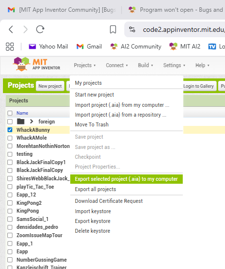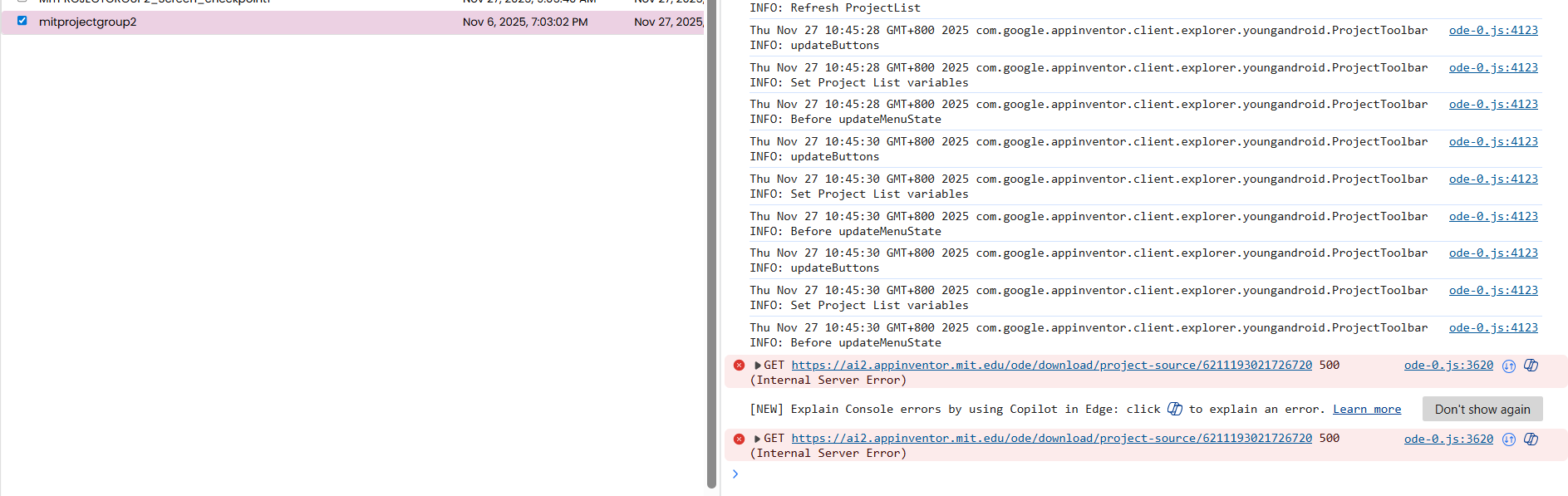 Good day! Me and my classmates made a program but then we can't open it anymore and the program won't export. How do we fix it?