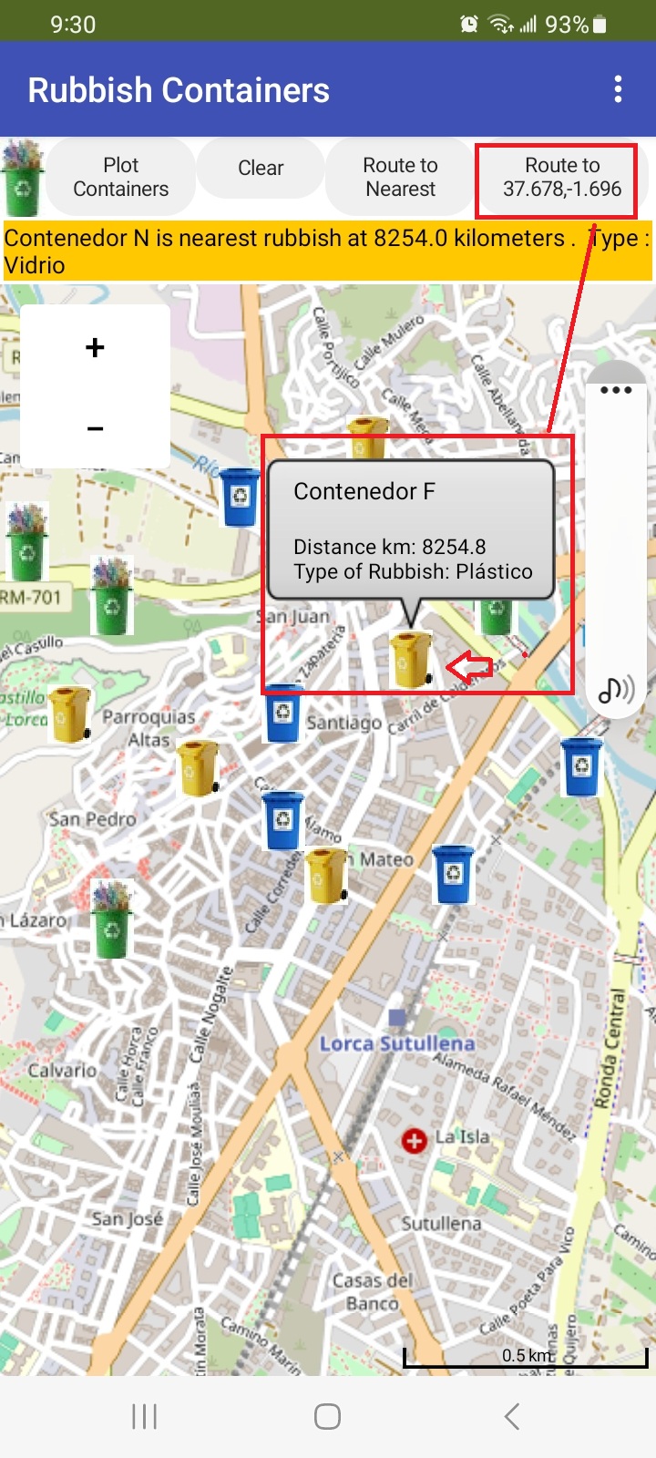 My project consists in using your location and from that point, choose a type of container, and looking at the map finding where the closest one is. For that reason u need a file to the different rubbish containers (glass, paper and plastic)