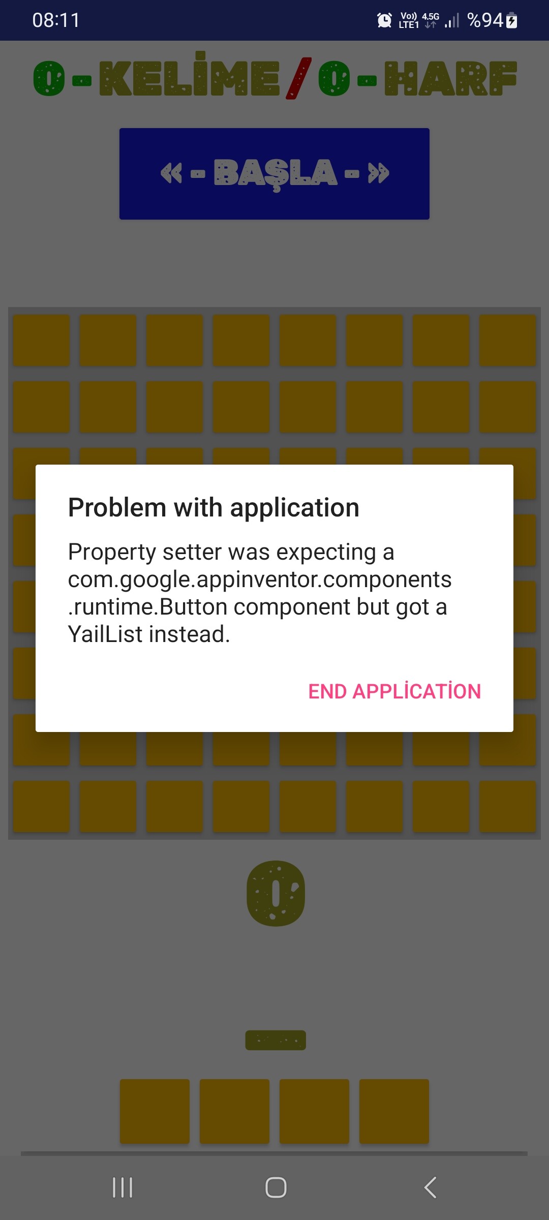 This is probably for the block 'For any button ' , because there I created the variable "Buttons" that is a list ( and it seems is too large ) . You'll find it in Bolum1.start , so remove this block . And the "Buttons" variable , to make lighter your project .