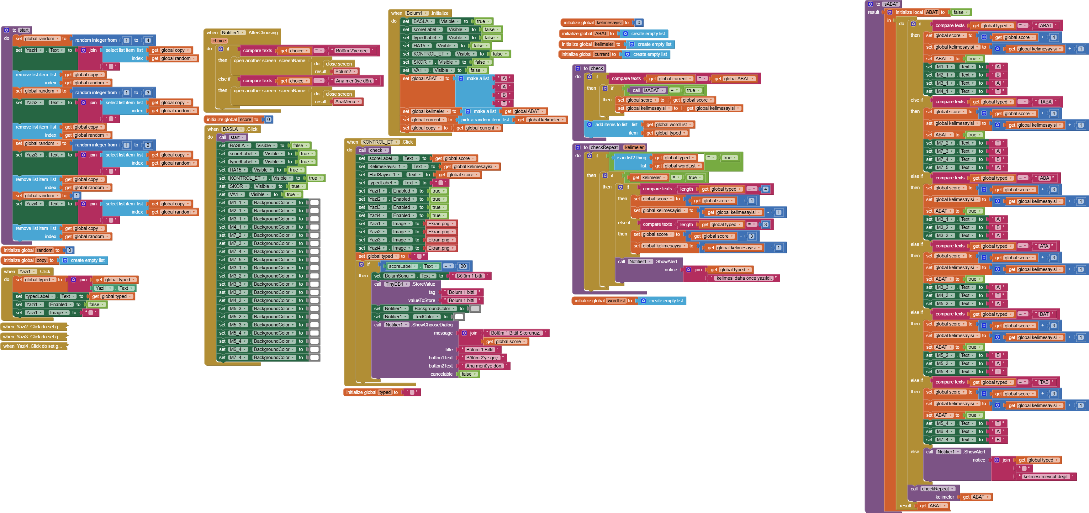 If you want to be 100% indipendent , you can use your cloud with firebaseDB ( if you want I'll give you an example ) , while TinyDB and CloudDB are of AppInventor , so if and when AppInventor will close , the data saved will be canceled . Even if I think Appinventor will not close because more and more people use it . But is your game a crossword puzzle ? If you publish the blocks image ( left click on mouse and then "save block as image " , and make sure you have not selected blocks ) . Or if you publish the .AIA project somewone of us will help you adding those things .