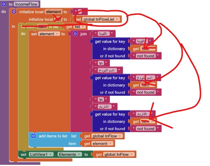 don't use the for each item in list loop and get the values for keys directly from your global variable InFlowList