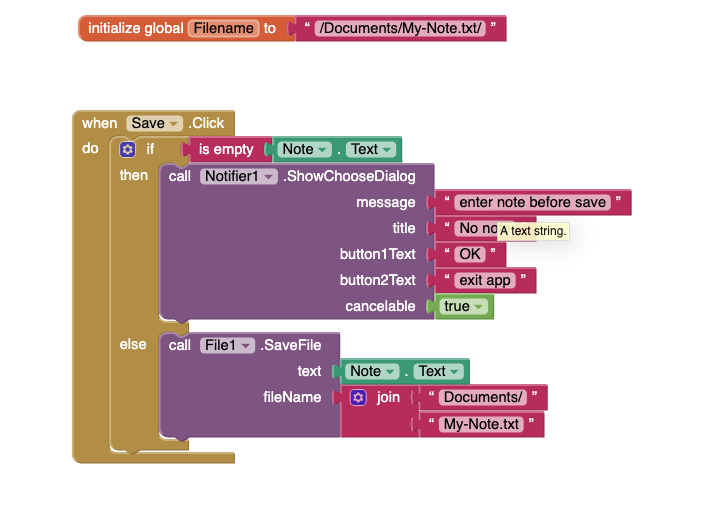 hello everyone i'm making a notes app and i'm aiming for for when save button pressed it it saves to documents but when i press the save button all it says is, runtime error, no error problem how do i fix that, please someone help.