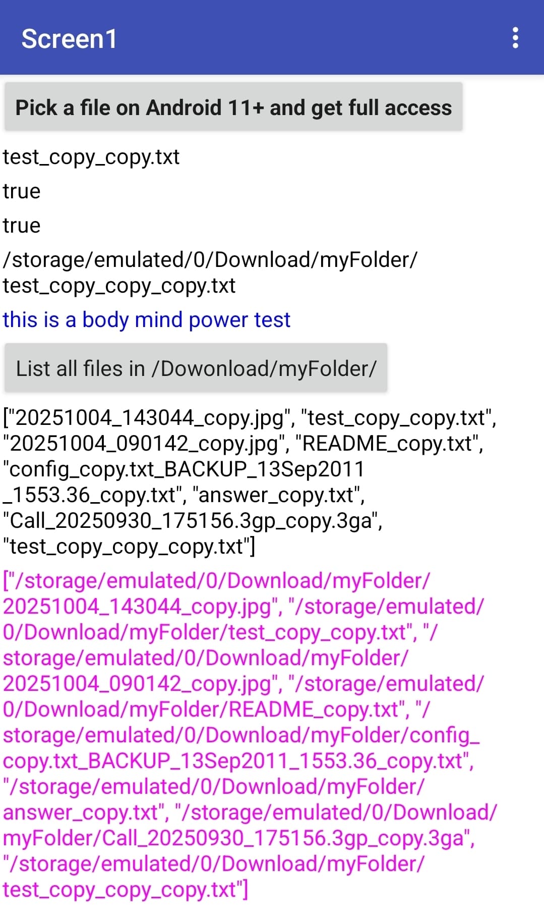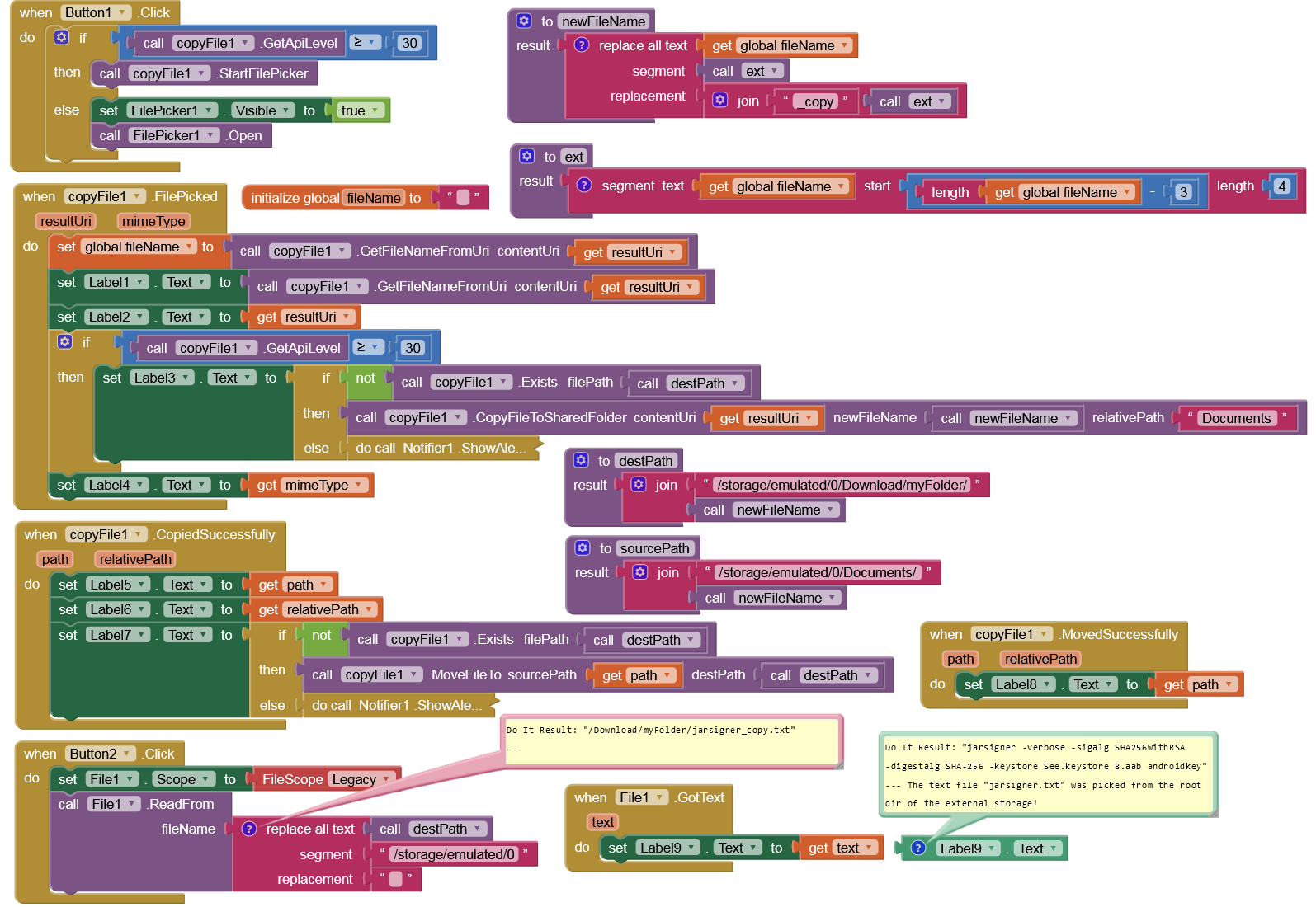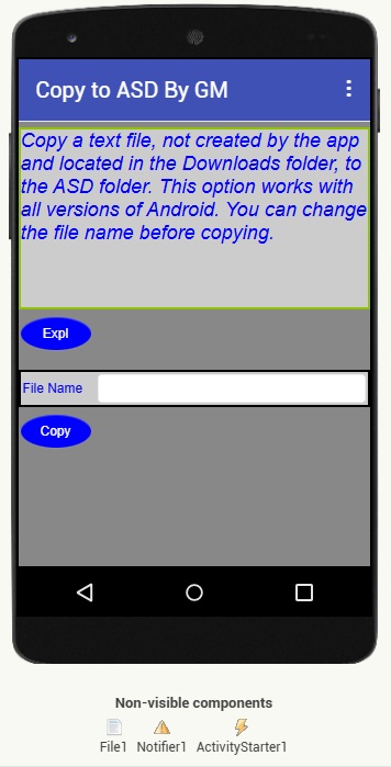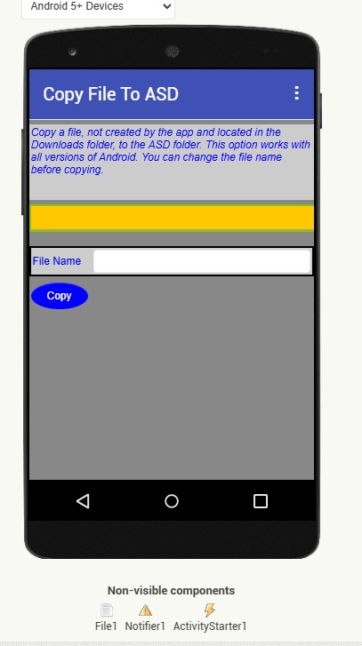 On Android < 11 devices the FilePicker component appears. However, I haven't added any blocks for this case, as it's widely known how it works. Therefore, the app is only designed for testing on Android 11+.