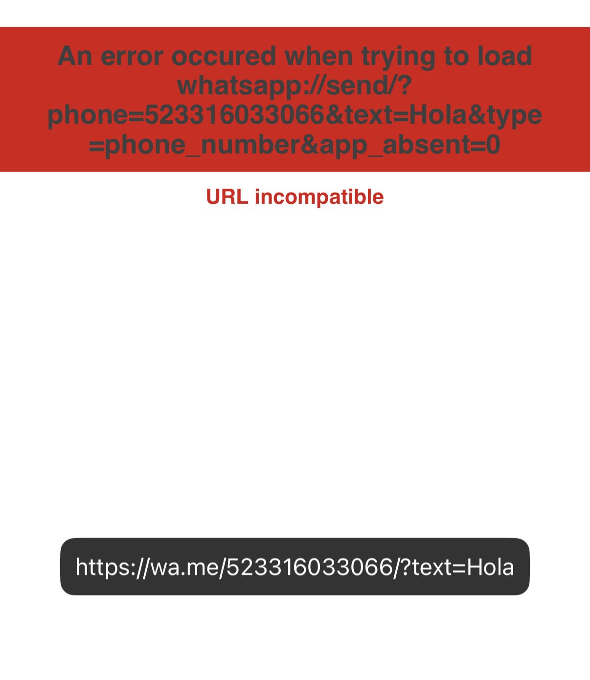 Good afternoon, could you help me learn how to send WhatsApp messages using an iPhone? I've tried several ways. If I open the link momentarily, I see that it works, but it says error.