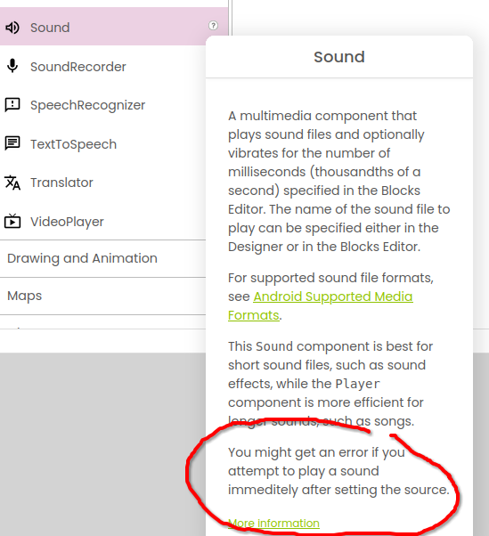 In my app I set the Sound “Source” attribute to the filename I want to play (as I said, it’s a short notification) and then immediately make a call to Sound method “Play”. According to the help, this situation could lead to an error.