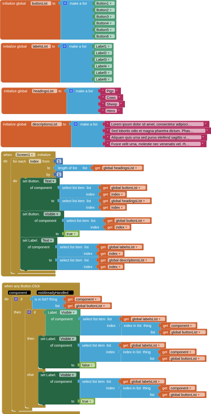 See the pic, with list items displayed in a ListView layout. What I would like to happen is that if the text in the list is tapped (eg pelvic tilts) I would like some text to appear below it, with instructions.
