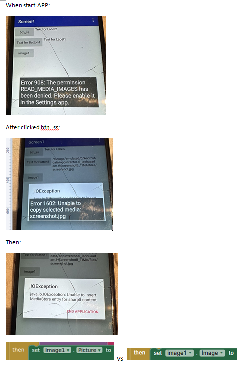 set all Permission in my phone still got error as long as started APP: Error 908: The permission READ_MEDIA_IMAGE has been denied....