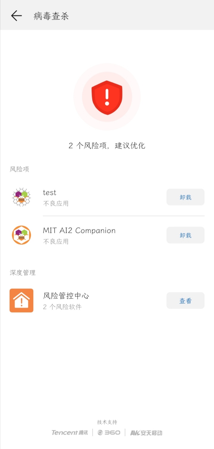 Android 9.0, not rooted or flashed, whether it is the mit version, niotron or AI2 offline compiled software will report viruses