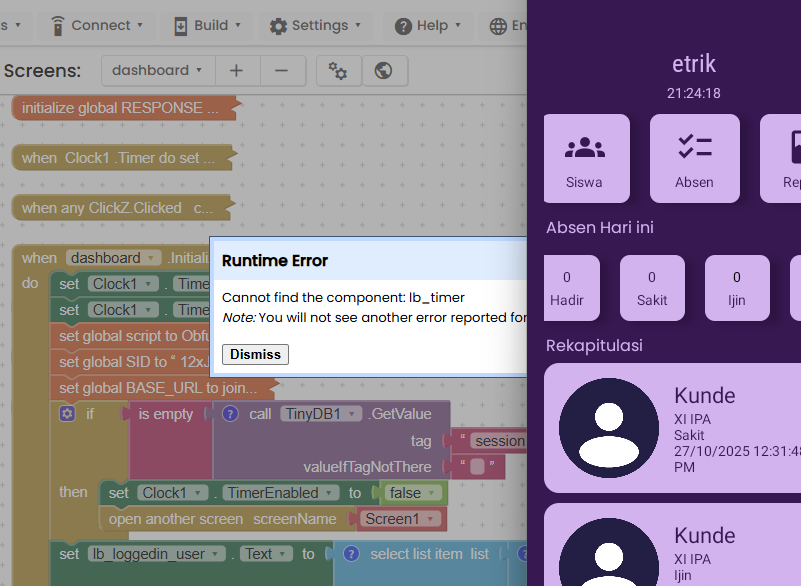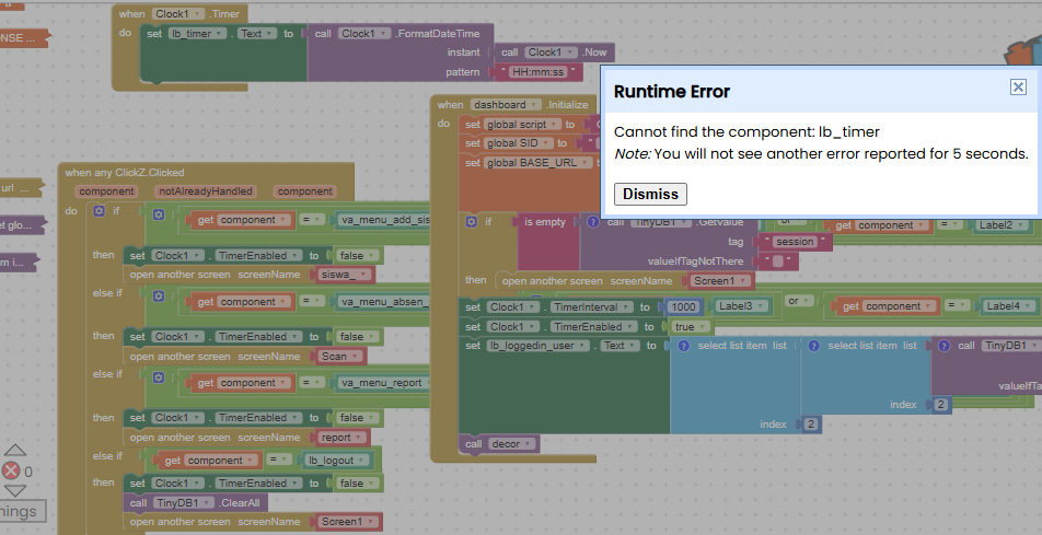 As also @TIMAI2 has initially said, you shall stop any clock running in any screen"X" before leaving it, otherwise the clock runs anyway, and when attempting to access to a component (like a label) belonging to a screen not active in that moment, it will issue the error.