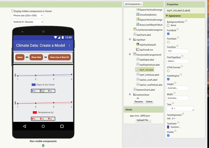 The YIntercept attribute of the Trendline component (from Charts) is 10 times the actual value. Instead of displaying B = 134.381 (for top chart), it displays 1343.81.
