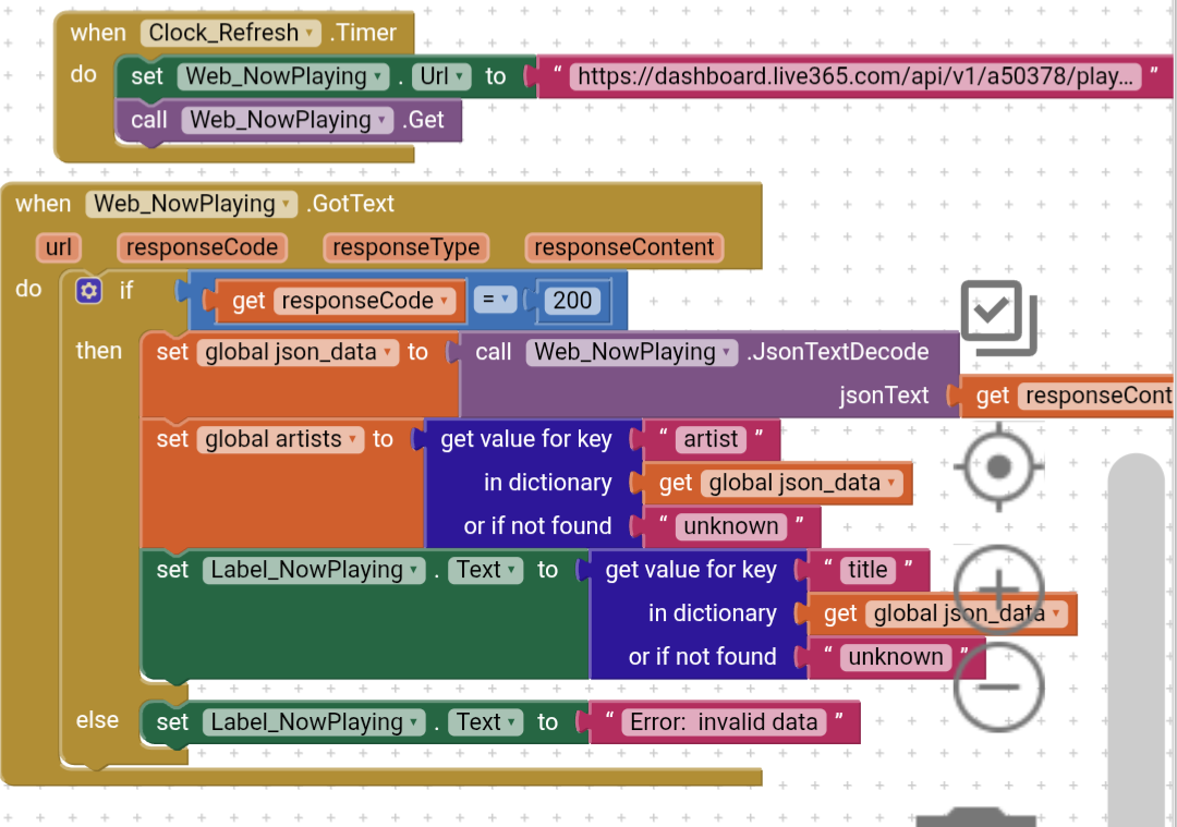 set global json_data to call the purple block web_nowplaying.jsonTextDecode