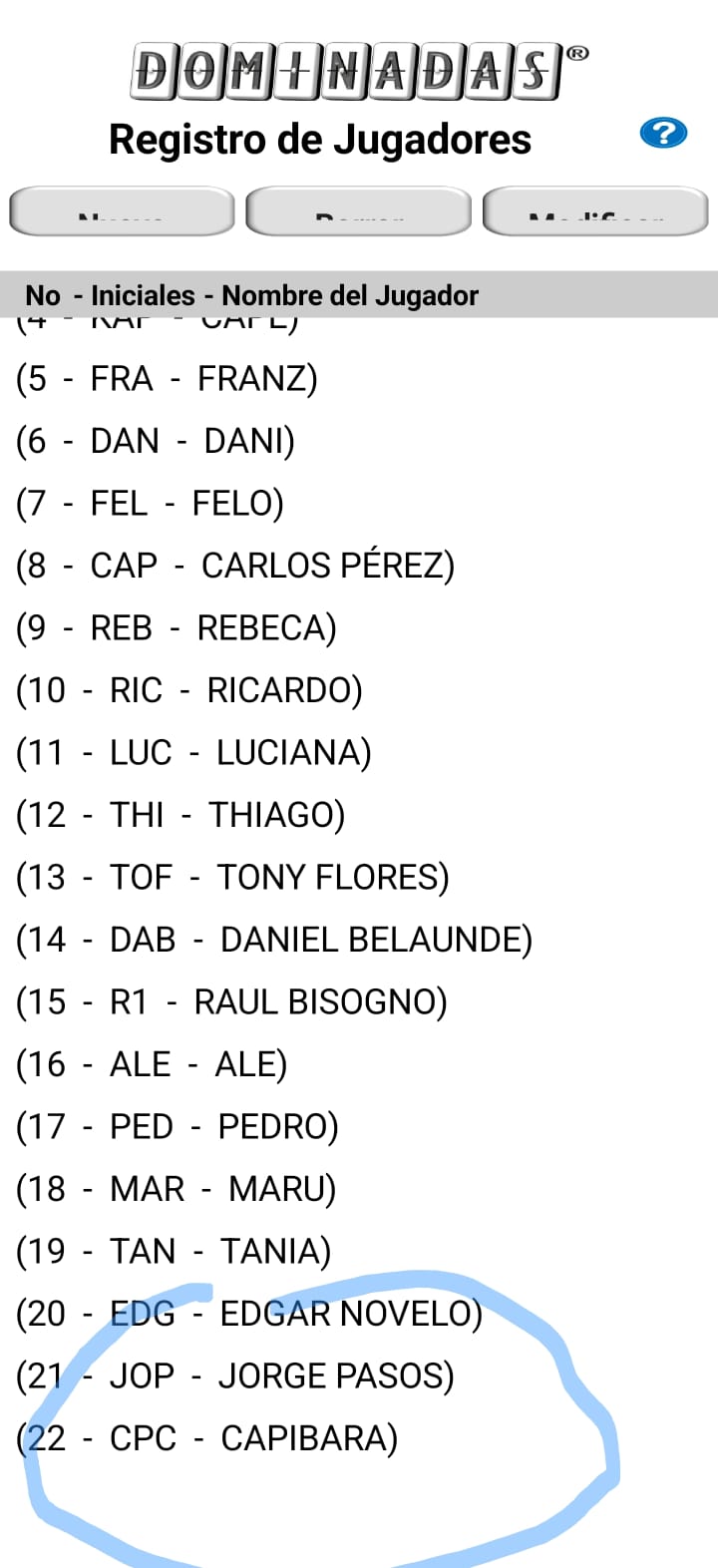 I've a 3 buttons screen, to handle game players in the app: you can Add, delete or modify them.