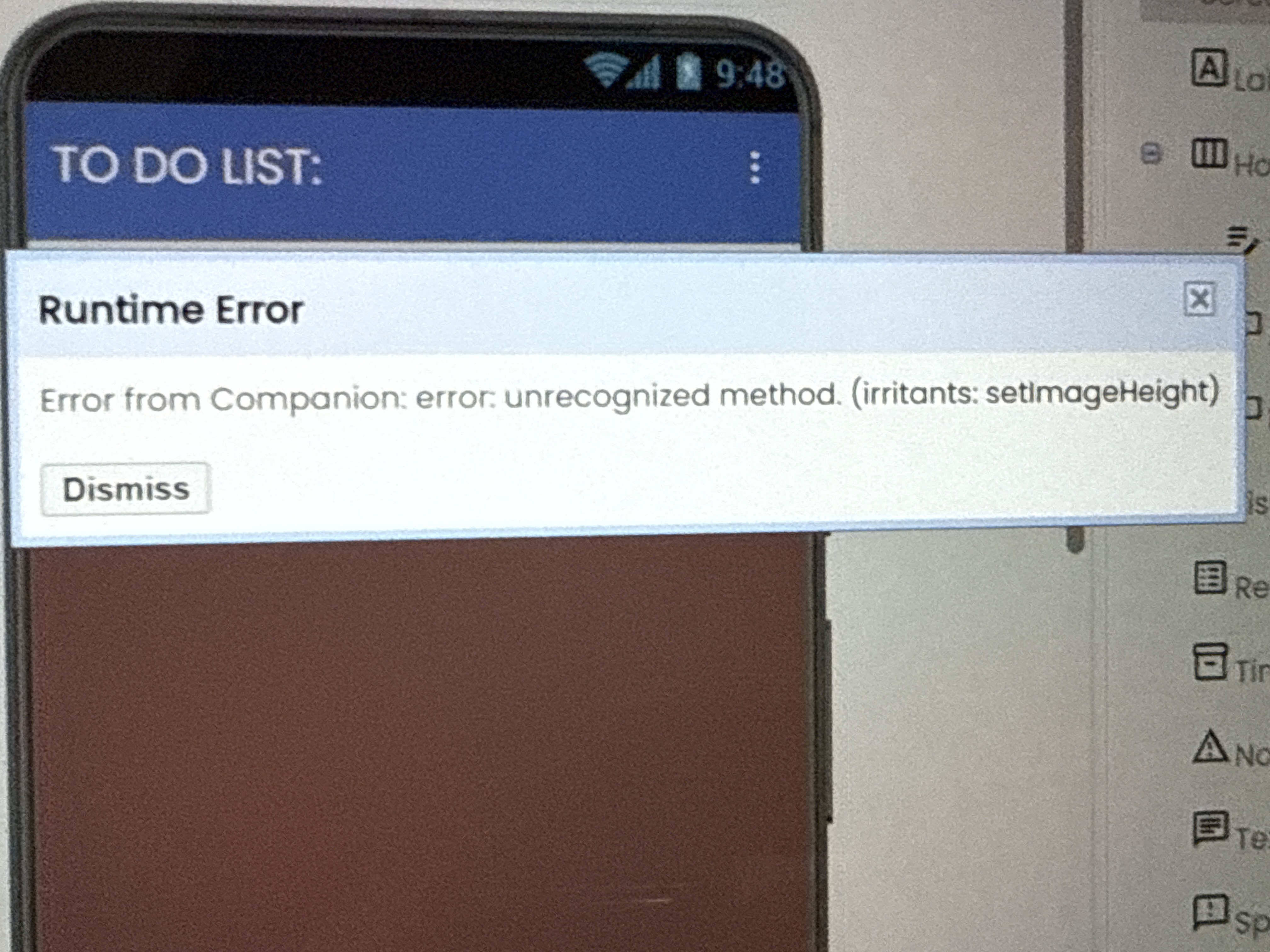 Unrecognized method (irritants:setImageHeight) how do i fix it?